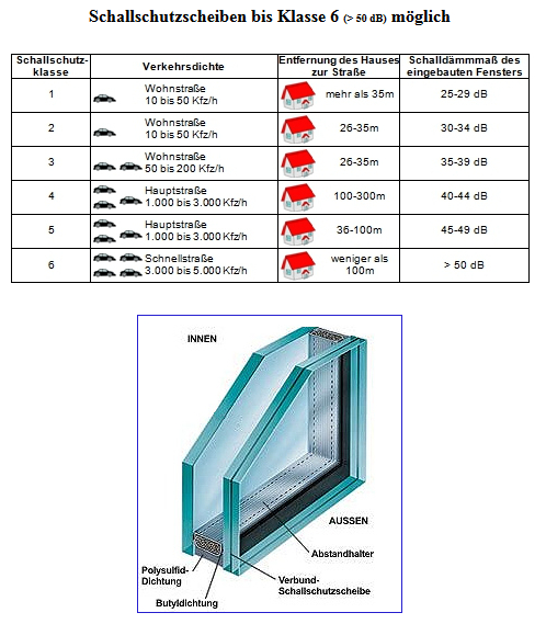 ⯀ Hervorragende Schallschutzwerte (je nach Verglasung sind Schalldämmwerte bis Rw,p 43 dB möglich)